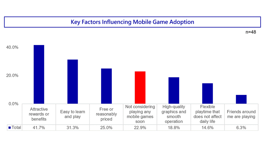 However, 22.9% say they would not consider playing mobile games in the near term, suggesting a firmly resistant segment in the market.