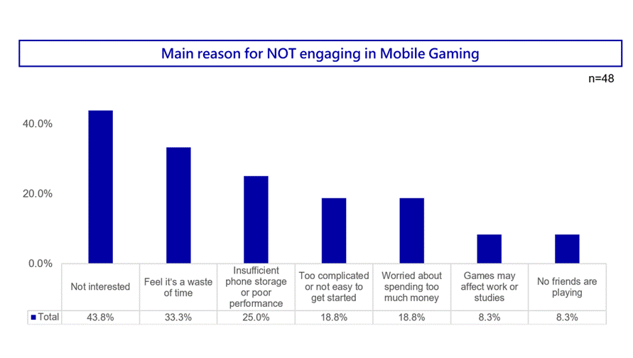 This reflects that some Thai consumers remain cautious about mobile gaming, particularly regarding time consumption, productivity concerns, and device barriers.