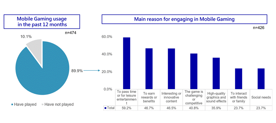 Nearly 90% of respondents played mobile games — leisure entertainment remains the strongest driver